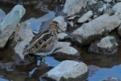 あいさつもそこそこに、野鳥観察会がスタート。島橋からコサギを観察していると、川岸をウロチョロしている鳥を見つけました、クイナです。その後、参加者の一人がタシギを見つけてくださり、みなさんのボルテージがさらに上がりました!アオジ、ジョウビタキ♀、モズ♀、カワセミも姿を現わし、開始から1時間ほど、島橋から離れられなくなってしまいました。 変電所前の落差工付近では、オナカガモとコガモのつがいを観察。アオサギが2羽、飛んできて縄張り争いをし、みなさん、その迫力に圧倒されていました。