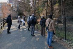 森野緑地には、およそ30羽のツグミがおり、水を飲んだり、対岸の古淵鵜野森公園の木にとまり実をついばんだりしていました。その群れの中にシメ、シロハラ、シジュウカラ、メジロ、コゲラも混ざっていて、どこに目をやればいいのか困ってしまうほどでした。